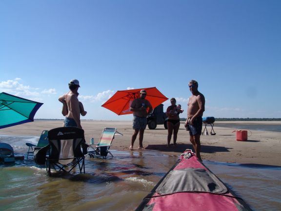 Picnicking on a sandy spot right at the southeastern end of Corregidor Bar was a local family. I spotted their beach umbrella and two beached boats from three miles off. They were the first people, not in a boat, that I’ve seen and spoken too in what seems like weeks. When I worked my way up (again, against the wind and cross current), they had a grill going with burgers and chicken. And they had cold beer. Which they offered and I accepted. (It was a Michelob Ultra, hence the “Ultra Gang.”) I didn’t catch all their names, but didn’t need to. They were friendly, good folk and we chatted a bit about my trip. And they told me about others they met over the years doing the same. After struggling around that bend, It was a reward to meet and talk with them (as was that cold beer.)